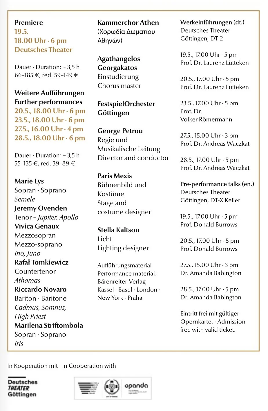 Handel - Semele Sunday 28 May 2023 18:00 19:00 Deutsches Theater Göttingen 11 Theaterplatz Göttingen, NDS, 37073 Germany (map) Google Calendar ICS